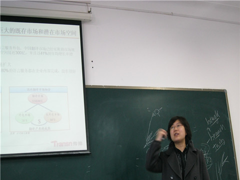 除此之外,传神翻译公司还对我院MTI教学工作做出了其他贡献。这学期,我院有幸请到传神翻译公司的技术人员为MTI的同学们讲授计算机辅助翻译课程,目的是使同学们能够熟练使用翻译软件,提高翻译效率,并在将来迅速与翻译市场接轨,成为优秀的翻译人才。