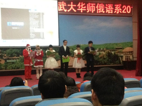 12月29日,第三届武大华师俄语系2013新年联谊会在武汉大学华体会平台大礼堂成功举行。我校俄语系及武汉大学俄语系的领导、老师和全体同学共聚一堂,喜迎新年。晚会由我院俄语系研究生、武汉大学俄语系学生及两校外教共同主持。