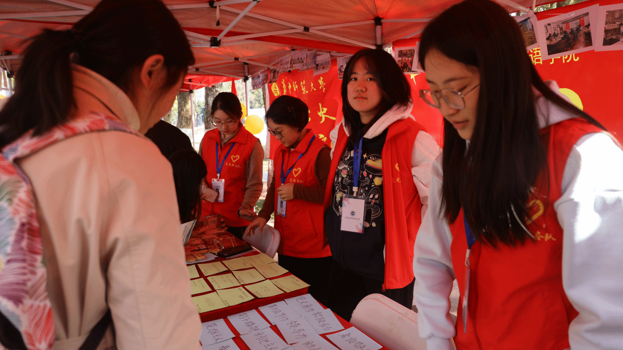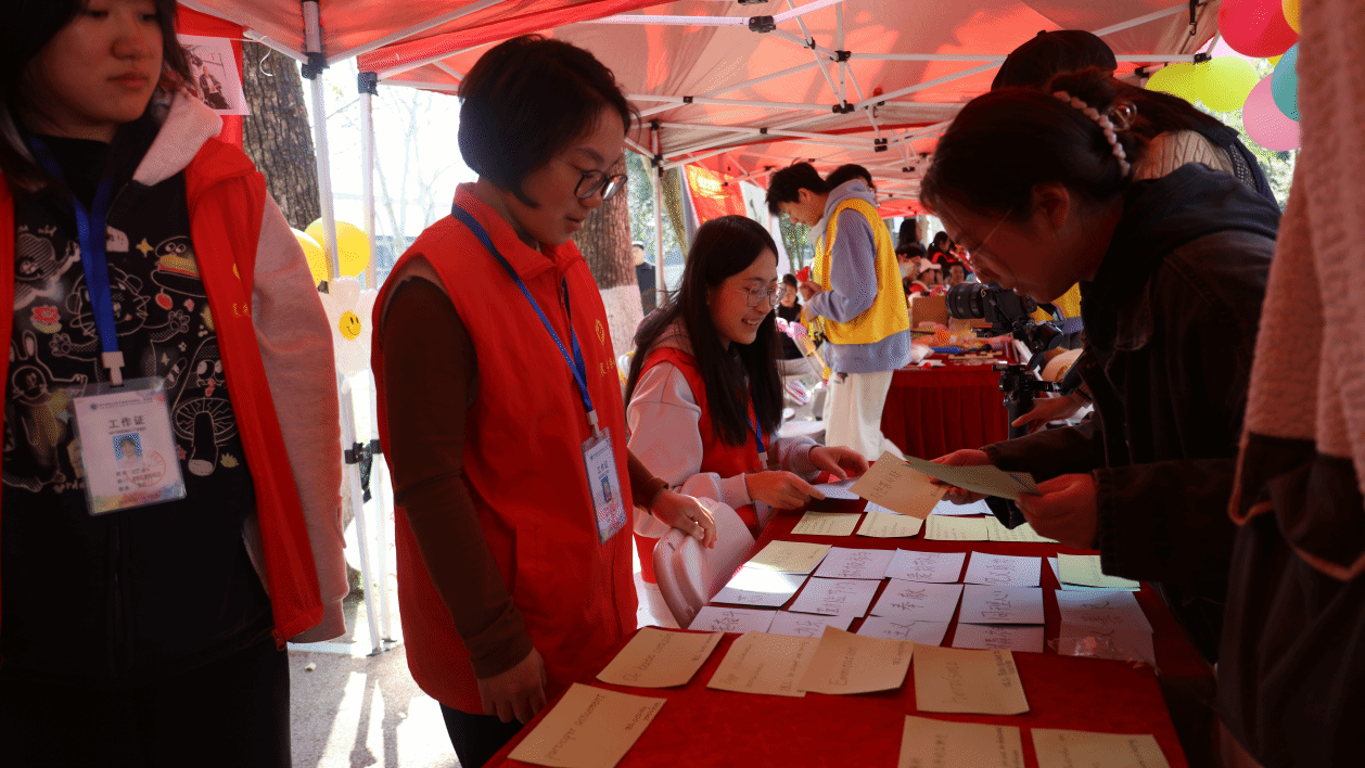历史长河川流不息,雷锋精神代代相传。3月19日下午,华体会平台青年志愿者协会(以下简称“外院青协”)在志愿服务公益集市上开展了“雷锋精神‘外’语驿站”。活动现场设置了三大主题互动区,巧妙地将跨文化元素与雷锋精神深度融合,让参与者在趣味体验中感受雷锋精神的时代内涵。