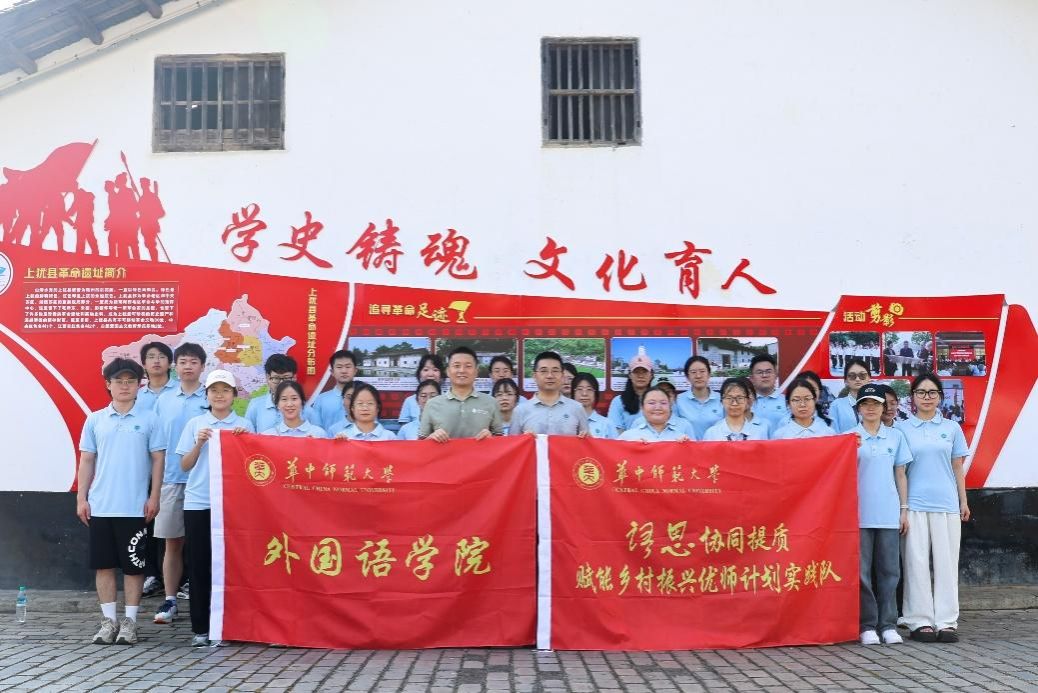 深植家国情怀、汲取奋进力量,7月5日,华中师范大学外国语学院语思实践队江西分队走进江西省赣州市上犹革命陈列馆,展开了一场红色寻访之旅。华中师范大学外国语学院副院长王佳,华中师范大学外国语学院团委书记吴波,上犹中学南校区包联办主任赖婷、高三14班班主任、校办副主任奚春玲等老师带队出行,全体实习实践学生共三十余人参与实践。