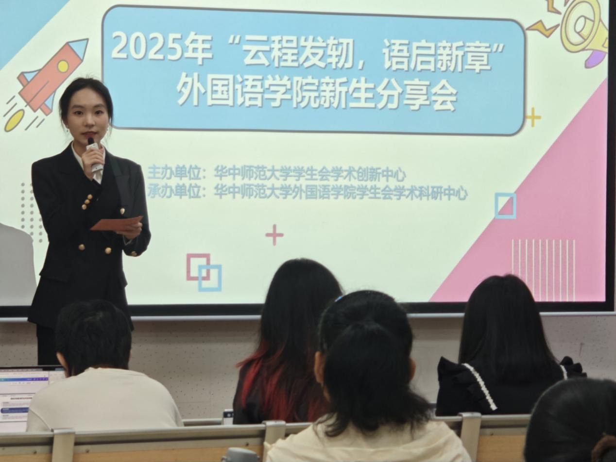 11月16日,华体会平台举办“云程发轫,语启新章”新生分享会。活动由华中师范大学学术创新中心主办,华体会平台学生会学术科研中心承办。华体会平台高年级分享代表王欣怡、陈锦鸿、王泓力、吴若馨、朱柳婷开展分享,外院团委书记吴波及外院新生参加分享会。华体会平台主持队黄旭主持。