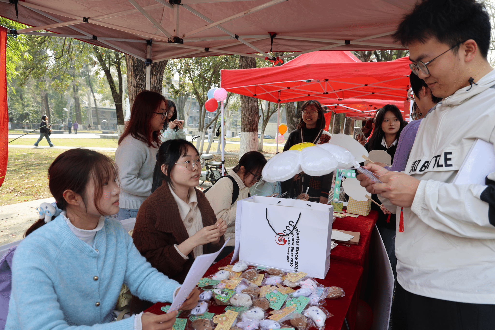 为增强活动互动性,外院青年志愿者协会设置“雷锋精神”闪电问答站与“爱心接力”图文共创游戏,挂靠社团心心火义教之家志愿者协会(学生)推出“心盲盒雷锋活动”与“义教心声·分享驿站”特色项目,各项目均设置盲盒、玩偶、笔记本、零食等精美奖品,吸引了众多师生驻足参与,现场气氛热烈有序。